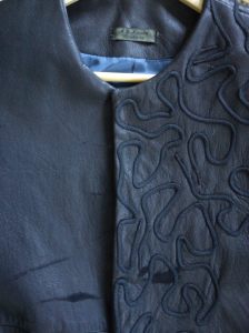 So I thought it could be great to do try the same technique on leather. After trying out on some little pieces of material, I went for it. Yesterday I almost finished the coat and this morning I looked at it again with fresh eyes. I am in love with it…