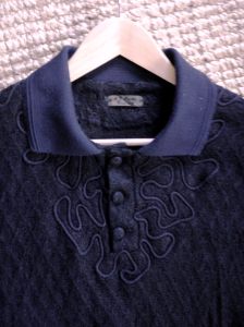 Lately I have been trying out embroidery with shoelaces and the result is beautiful. I already made a few dresses with this technique (not all for myself,hi,hi) and with some very fine knitted fabric I also made a man’s polo sweater with the embroidery.