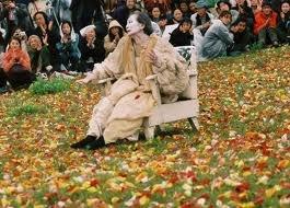 Their last collaboration is a breathtaking performance in open air in  May 2002 on the Shinano riverbed, where Nakagawa builds a dream with millions of multi-coloured tulips, thrown out of a helicopter, as the wheelchair bound Ohno dances under the swirling shower of petals in the rain…