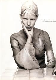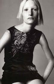 I like her, because she has a punky glamour, naturel beauty and  mystique in her face. When showing Haute Couture, she makes it look more ‘wearable’. In portraits she captures my eyes and makes me wonder what on her mind. She can make basics look like high fashion and high fashion less extraordinary…