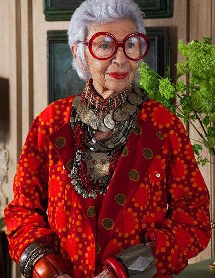 The first time I noticed Iris Apfel was in Vogue Italia a couple of years ago. I saw this beautiful elderly lady wearing lots of exotic jewelery and interesting clothes, too bad I couldn’t read her story…