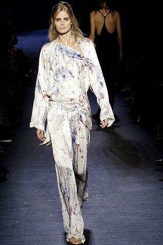 Another influence of Pollock’s work in fashion is the dripping technique reproduced on fabrics and clothes by designers like Ann Demeulenmeester, Dries van Noten, Dior Homme and Dolce & Gabanna