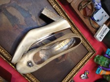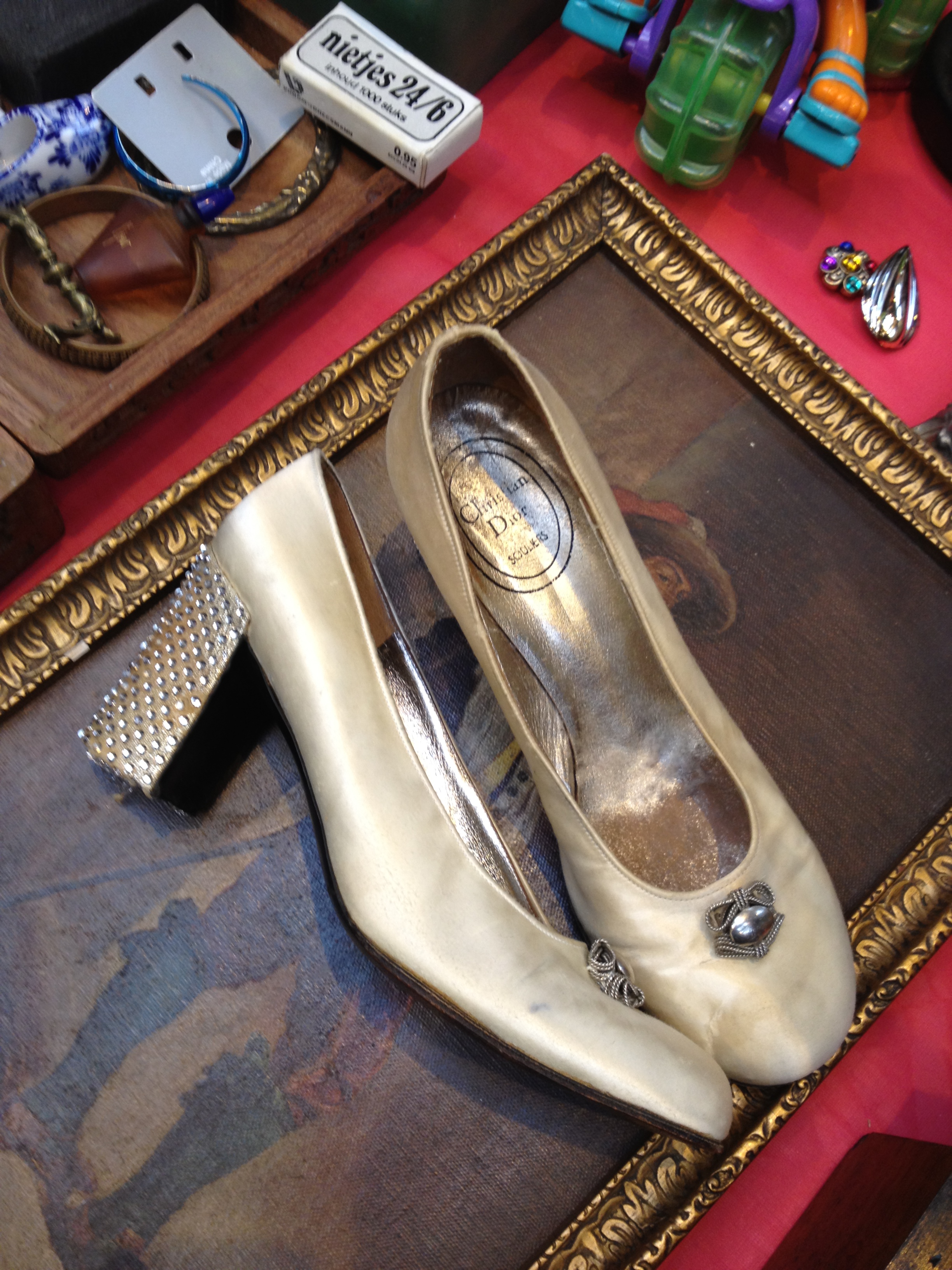 Last weekend we went to the market again and we spotted a pair of beautiful vintage Dior shoes. The lady behind the table explained they came from a museum in Paris and were worn at the first Dior fashion show. I got really excited and asked the price; € 150,-. I doubted what to do and the lady said I could also make an offer. I had to think about it because soon I will go on holiday to Japan and therefore it’s not a good time to spent so much money. We walked on, but the shoes stayed on my mind. After we finished our rounds on the market Astrid asked if I wanted to go back and get the shoes. I decided not too, but I’m sure I will regret this decision one day….