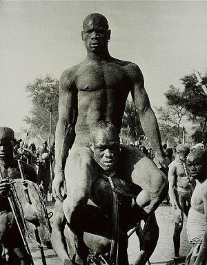This photograph by George Rodger shows two muscular wrestler of a Nuba tribe in Kordofan, Southern Sudan. It was taken in 1949, during Rodger’s journey across Africa which he made to escape the traumas of the Second World War. The impact of this photograph has a melancholy ending. This famous Despite Roger’s unwillingness to reveal the whereabouts of the tribe to German filmmaker and photographer Leni Riefenstahl, the latter discovered their location some fifteen years later. In the 1970s, her photographs of the Nuba people were published throughout the world and attracted more people to the area. The Sudanese government subsequently encouraged the oppression and displacement of Nuba tribes because they wrongly suspected them of unified alliance to the Sudan People’s Liberation Army.