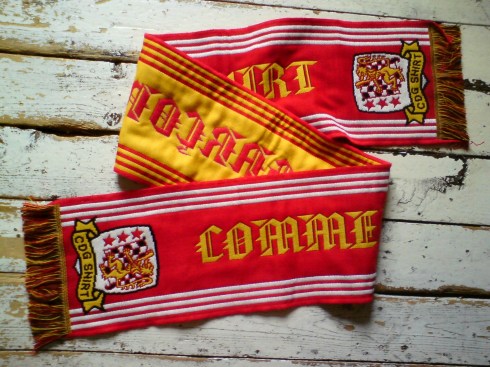 I love vintage football scarves for some of the designs are so very colourful and beautiful. A great accessory to spice up dark and cold winter days or a dull coat….