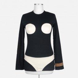 Peggy’s resurge for the book led to contact with Comme des Garçons designer Rei Kawakubo and together they went over the Gernreich archives and selected key pieces to be re-created under the Comme des Garçons label as the Moffitt line, which also contained a series of t-shirts depicting Peggy Moffitt’s image…