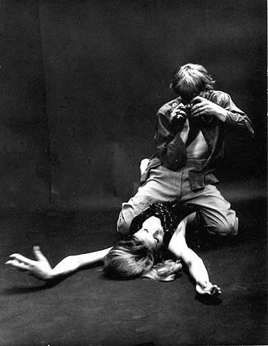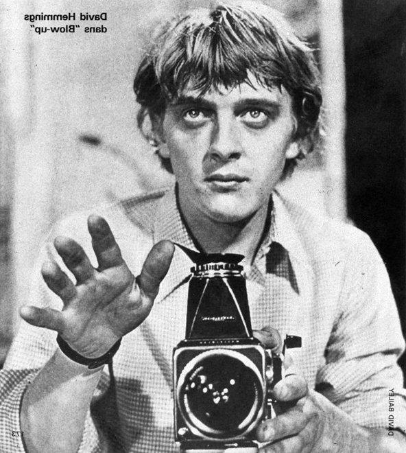 Blow-Up is filmed in London during the sixties. David Hemmings leading movie-character, a fashion photographer, is based on David Bailey, who was the it photographer at the time.  Other people starring in the movie are: Vanessa Redgrave, Sarah Miles, John Castle and sixties model Veruschka. Also appearing in the movie are Jane Birkin, Peggy Moffitt and The Yardbirds.