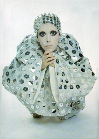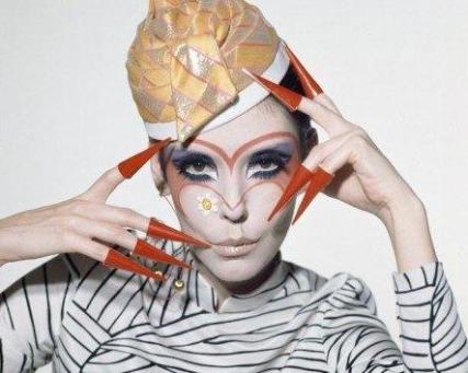 Peggy Moffitt (born in California in 1939) was during the 1960s a premier model and muse for the late fashion designer Rudi Gernreich. She developed a signature style that featured heavy, Kabuki-like makeup and an asymmetrical hair cut.