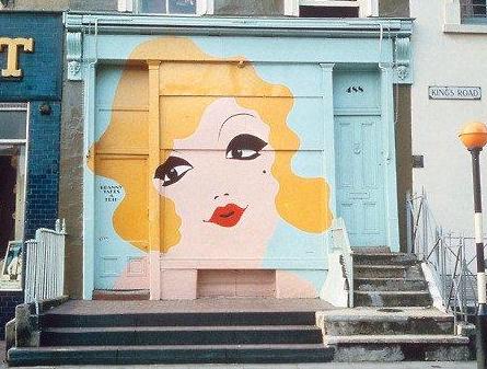 But not only the clothes sold at Granny’s were revolutionary, the boutique also became known for its changing facade. In 1966 it featured giant portraits of Native American chiefs Low Dog and Kicking Bear. In 1967 the entire front was painted with a giant pop-art face of Jean Harlow and was later replaced by an actual 1948 Dodge saloon car which appeared to crash out from the window onto the forecourt.
