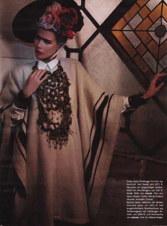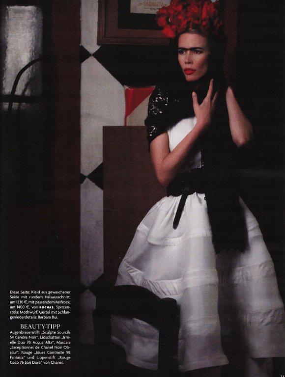 Karl Lagerfeld photographed Claudia Schiffer as Frida Kahlo for German Vogue in 2012