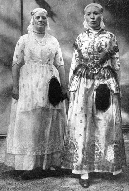 Vaguely I remember cycling to my grandmother on Sundays, together with my mom. Grandma was dressed in traditional clothing every day and it made her look very impressive. Together with my grandfather, she lived in the village they were born and had grown up in and there a lot of the older people were still wearing the lace caps, embroidered vests and I don’t know how many skirt piled over each other. Strangely enough I don’t remember much of my grandfathers clothes, but I think it was traditional too.