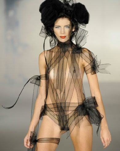 In 2007, Kylie Minogue appeared in Pam’s black mesh metal studded cat suit in her 2 Hearts Video, Naomi Campbell modelled a Pam Hogg lycra and snakeskin printed leather catsuit in Vogue while Siouxsie Sioux wore numerous distinctive Pam Hogg signature cat suits throughout her 2008 tour and appearance on Later with Joolz Holland. During the show, Pam was interviewed and announced her inevitable return to fashion.
