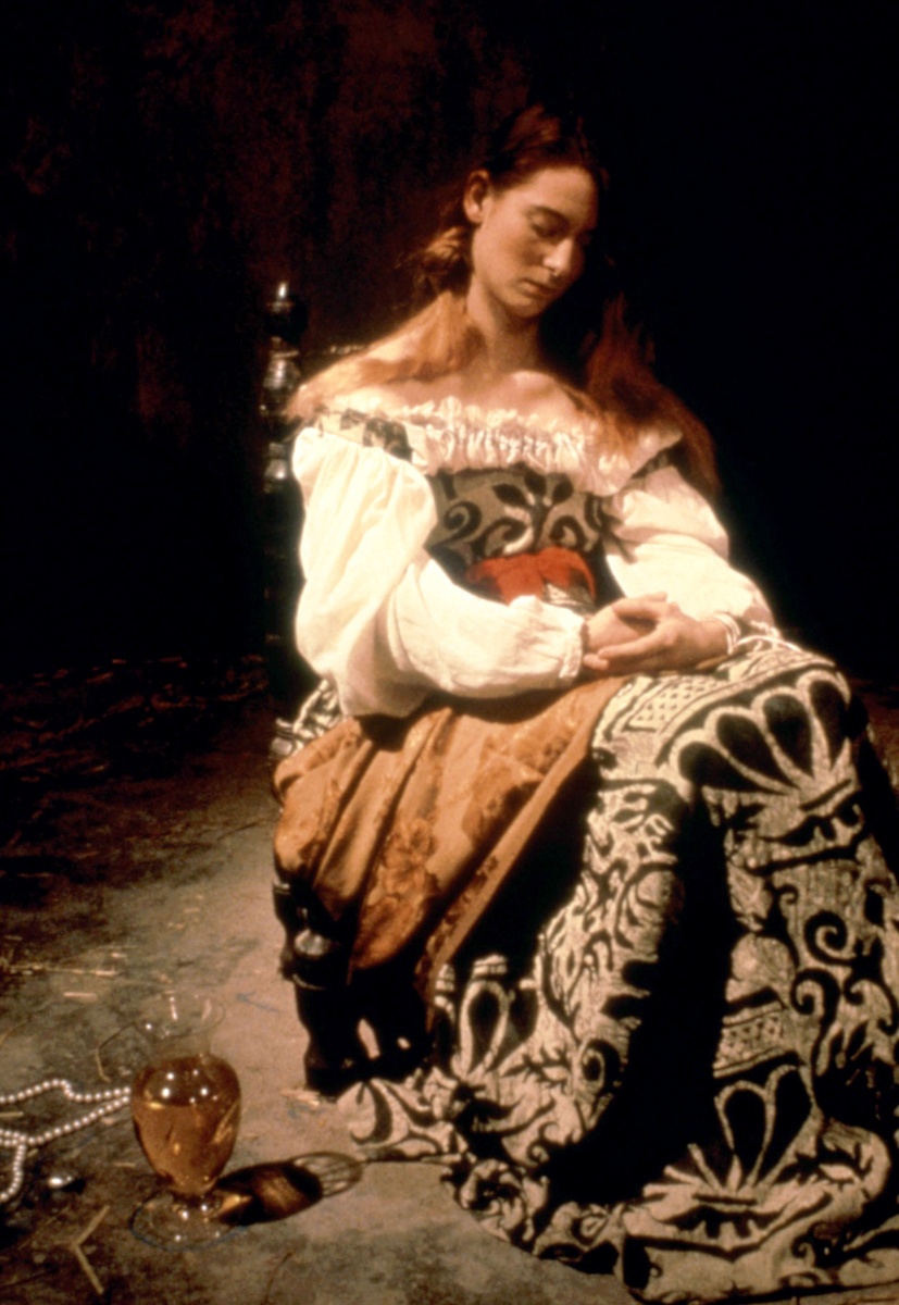 Having gained design experience on the music videos, a year later Derek Jarman asked Sandy to design the costumes for Caravaggio (a film directed by Jarman). He also took her around the set and introduced her to the crew members and explained their roles. The budget was very low so there was a lot of costume making with a team. Every cast and crew member helped out on the film process – on all aspects.