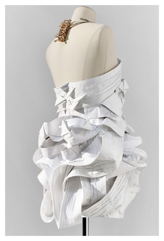 Jun TakahashiSpecial pieces made from deconstructed men’s white shirt collars. Photo by René Habermacher.