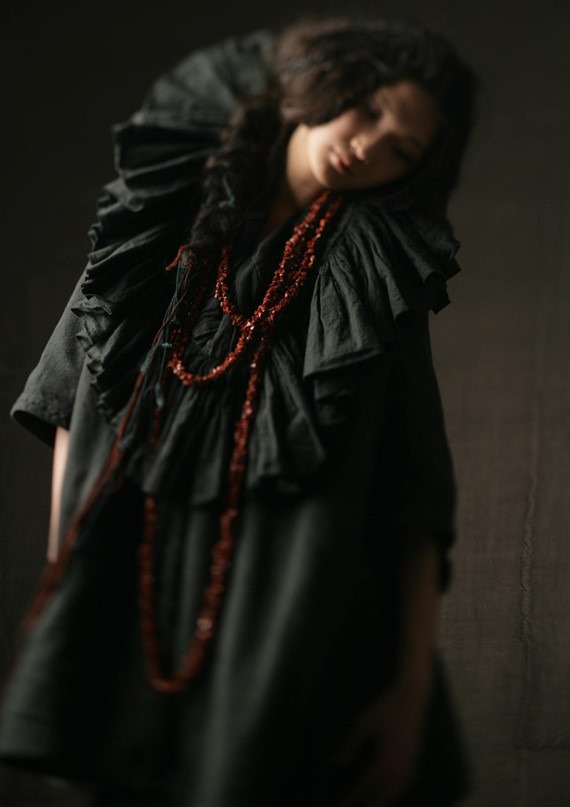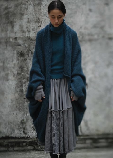 The production of Ma Ke’s haute couture line is completely done in a workshop in Zhuhai, which employs a team of workers skilled in traditional clothing manufacturing techniques. All stages of production are done in-house, including the spinning, weaving, dyeing and sewing; even using traditional equipment such as a Chinese loom dating from the 19th century. Some of the garments in the collections either incorporate or are made out of recycled material and found objects, including a paint-covered sheet made into a dress and an old tarpaulin (large sheet of strong, flexible, water-resistant material, often cloth such as canvas) constructed into an over-sized coat. Through this brand, Ma Ke is praised for the dedicated efforts to preserve both traditions and the environment.