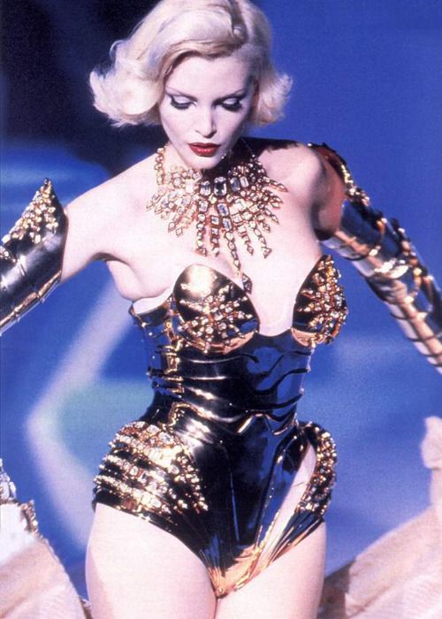 what a genius Mugler was in his heyday. His imagination and view on feminity was definitely groundbreaking, although some feminists will not agree. Glamour, stardom, sculptural clothing that is still modern, multiple talents and great looks; the man had everything. A true Renaissance Man.