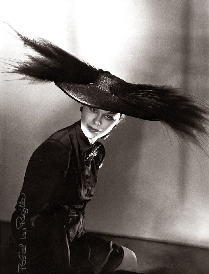 Schiaparelli hat modeled by Lud photograph by Horst 1946Moddeling a Schiaparelli hat