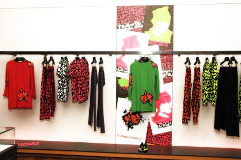 In September 1987, six months after he’d designed costumes for the New York City Ballet’s premiere of Ecstatic Orange—and after the sudden death of Warhol, who was buried in a Sprouse suit—Sprouse returned to fashion with the opening of his own store in a converted firehouse on Wooster Street. He was now in business with 24-year-old Andrew Cogan, whose father, Marshall, was chairman of GFI-International. At last, he had big money behind him. But the store was a risky venture—he would be the first designer to have a full-scale emporium in Soho. “There was nothing like this downtown,” says longtime friend Candy Pratts Price. “It was a real happening. A living environment.”