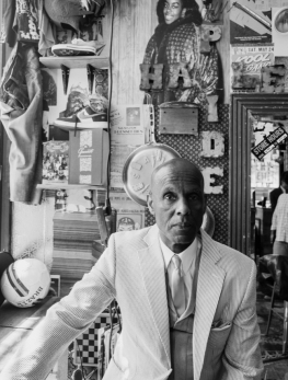 His designs specified the look of hip-hop artists, sporters and those incurred by gangsters. “Gangsters. That’s who I grew up with. Middle-class blacks couldn’t accept what I was doing—you had to be of a revolutionary spirit. Who would be more like that than gangsters? And who would have the money? Hip-hop artists didn’t have any money. They used to wait until the gangsters left the store before they could come in and ask what the gangsters wore. Everybody follows the gangsters. The athletes came before the hip-hop artists. Mark Jackson, Walter Berry. I’ve got pictures of NBA players that I can’t even remember their names. The athletes had money earlier that the hip-hop artists.