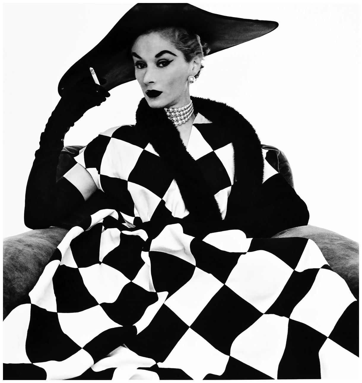In Vogue April 1950, one of Irving’s most memorable portraits of Lisa is published, wearing a harlequin dress and portrait hat. A few months later she models the Paris couture for Irving in a top-floor, north-lit studio on Paris’s Rue de Vaugirard. These pictures will be published in Vogue following September.