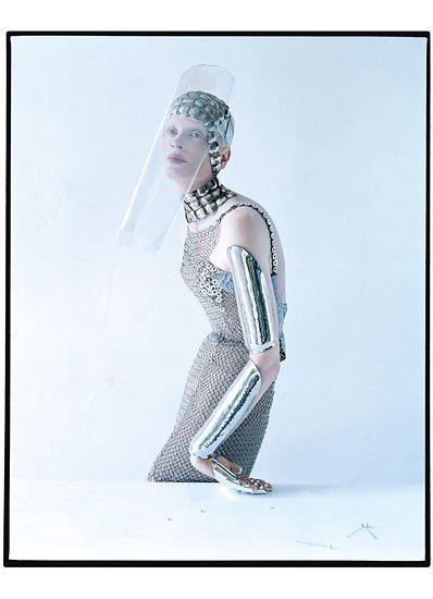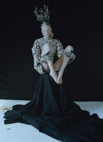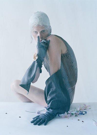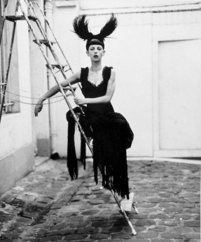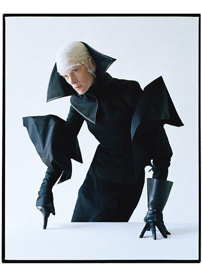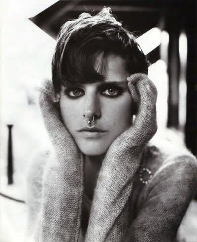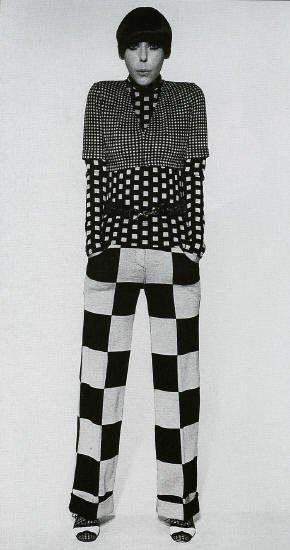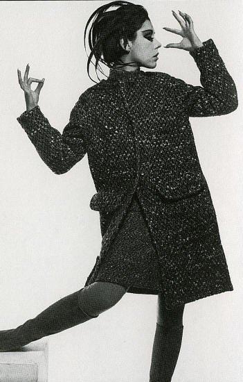 Peggy Moffitt (born in California in 1939) was during the 1960s a premier model and muse for the late fashion designer Rudi Gernreich. She developed a signature style that featured heavy, Kabuki-like makeup and an asymmetrical hair cut.