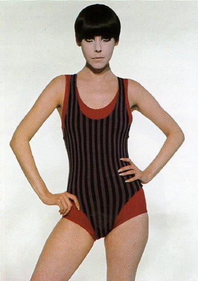 Though her unique look has now become iconic of the 60s fashion scene, Peggy started out pursuing a career in film, beginning with an uncredited role in the 1955 film ‘You’re Never Too Young’. As a model, she developed a signature style, including false eyelashes and heavy eye makeup, drawing on Japanese Kabuki theater. Her hairstyle, an asymmetrical bowl cut, created by Vidal Sassoon, became known as the ‘five point’. Her unique look became an icon of the 1960s fashion scene. In 1964, she made international headlines when she was photographed by her husband since 1960 William Claxton wearing Gernreich’s famous topless monokini bathing suit. Peggy was one of the few models bold enough at the time to model it…..