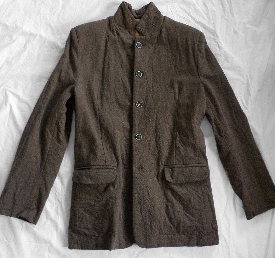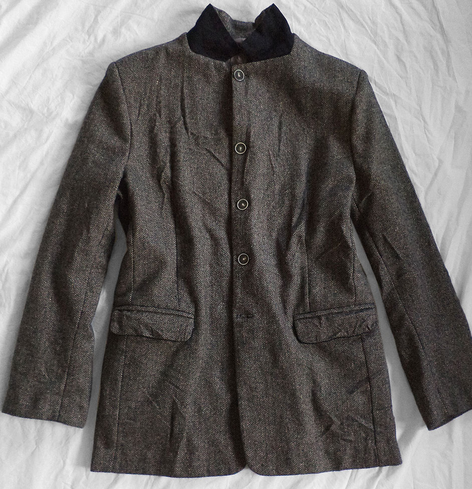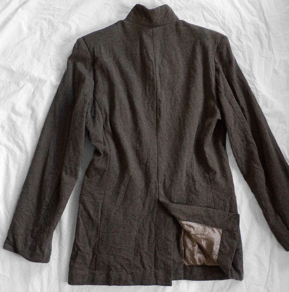 €485,- (On hold for photoshoot) . Sizes Size: Eur 48 -USA 38 Back length: 76cm- 30.4inch Sleeve length: 66cm – 26.4inch Colour Rusty brown/black cotton tweed Details fully lined, 1 inside pocket, visible hand stitched finishing Purchase Details You will receive a PayPal invoice. Please read our terms and conditions policy for shipping & handling costs